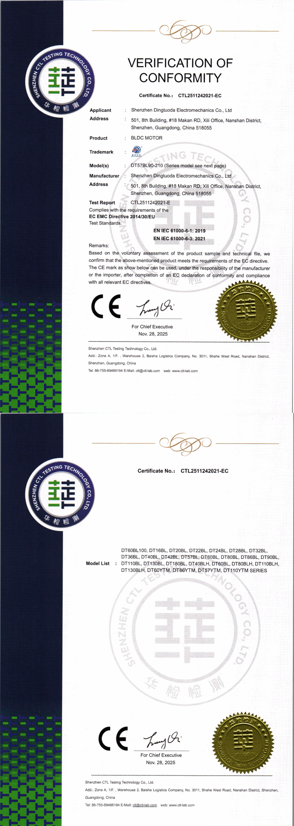 首頁->產(chǎn)品認(rèn)證->無刷電機(jī)和一體機(jī)CE認(rèn)證證書